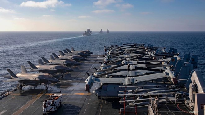 The USS Makin Island (LHD-8) and amphibious transport docks USS Somerset (LPD-25) and USS San Diego (LPD-22) make up the ARG that also includes the 15th MEU’s approximately 2,500 Marines. The Makin Island has a squadron of F-35 fighters onboard.