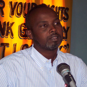 Xafladdan oo ay soo qabanqaabisay Xarunta Dr. Ismaaciil Jimcaale ee Xuquuqda Aadanaha, isla markaana ay maalgelisay Hay'adda National Endowment for Democracy (NED) oo fadhigeedu yahay magaalada Washington ee dalka Mareykanka ayaa waxaa ka hadlay mas'uuliyiin ka socotay bulshada rayidka qeybaheeda kala duwan, kuwaasi oo aan ka xusi karno Abwaan Cabdi Muxumed Amiin oo ka tirsan guddoonka Xarunta, wuxuuna sheegay in xuquuqda aadaha ay soo martay heerar kala duwan, wuxuuna tilmaamay in la soo maray waqti la is-adoonsan jiray ilaa aakhirkii la isku af-garto in xal loo helo arrimahaas.