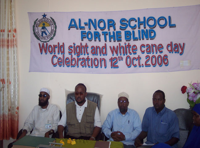 Jimco, October 13, 2006(HOL):  Waxaa maalintii shalay ahayd oo taariikhdu ay ku beegneyd 12-ka Oktoobar laga xusay magaalada Muqdisho maalinta Aragga Caalamka oo ah maalin si weyn loo maamuuso sanad kasta marka la gaaro 12-ka Oktoobar, waxaana xaflad lagu weyneynayay maalintaas lagu qabtay Dugsiga Indhoolayaasha Al-Nuur oo Muqdisho ku yaala.
