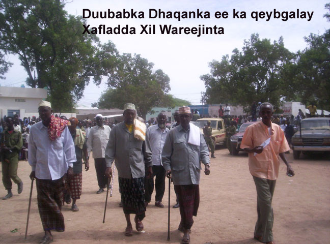 Khamiis, January 04, 2007(HOL): Munaasbad si weyn loo soo agaasimay islamarkaana Xilka looga wareejinayay Mas'uuliyiintii hore ee Maamulka Gobalka hiiraan kana dhacaday Fagaaraha xarunta maamulka gobalka hiiraan ayaa waxaa ka soo qeyb-galay Ugaasyada Gobalka Aqoonyahano Qeybaha Bulshada ku dhaqan Gobalka iyo waliba Danjiraha Dowlada Soomaaliya u fadhiya Dalka Itoobiya C/kariin Faarax Laqanyo.