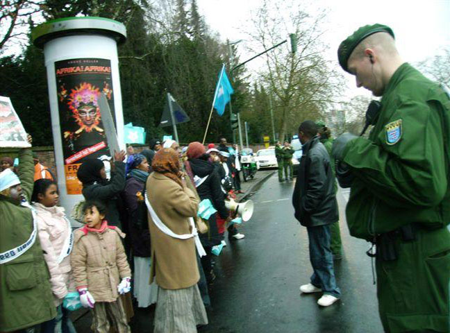 Dadkani ayaa waxay ku hor banaanbaxeen Safaaradaha Mareykanka iyo Itoobiya ee dalka Jarmalka , iyagoo ku luuqeynayay Heesihii la qaadi jiray xiligii uu socday dagaalkii dhexmaray Soomaaliya iyo Itoobiya.
