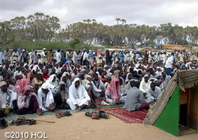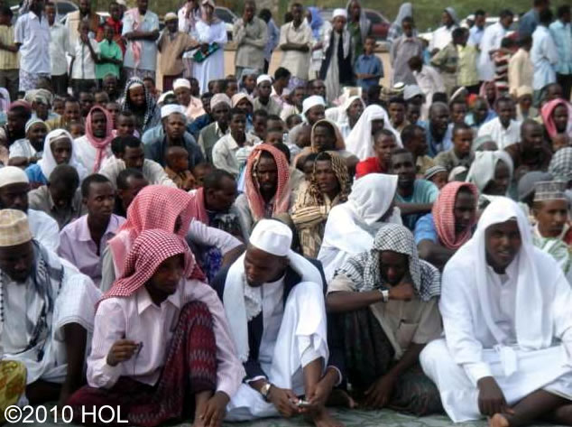 Jimco, 10, Sep, 2010 (HOL) Kumanaan dadweyne ah ayaa maanta isugu soo baxay salaada ciida goobo kala duwan oo ay u cayimeen maamulka Xarrakada Mujaahidiina Al-shabaab ee ka arrimiya goballka Hiiraan, kadib markii xalay gadiid lagu soo xiray cod baahiye dadka loogu sheegay goobaha ay ku soo tukan doonaan maalinta bari ah (Saakay).
