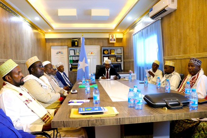 Jimco, Abril 24, 2020 (HOL) - Wasiirka wasaaradda Aw-qaafta iyo arrimaha diinta Soomaaliya Shiikh Nuur Maxamed Xasan, wasiir ku xigeenka wasaaraddaasi iyo qaar kamid ah culimada Magaalada Muqdisho ayaa waxey maanta yeesheen kulan looga hadlayay sidii wadaaddada ay qeyb uga noqon lahaayeen la dagaallanka xanuunka COVID-19 oo ay dowladda hadda dagaal kula jirto.