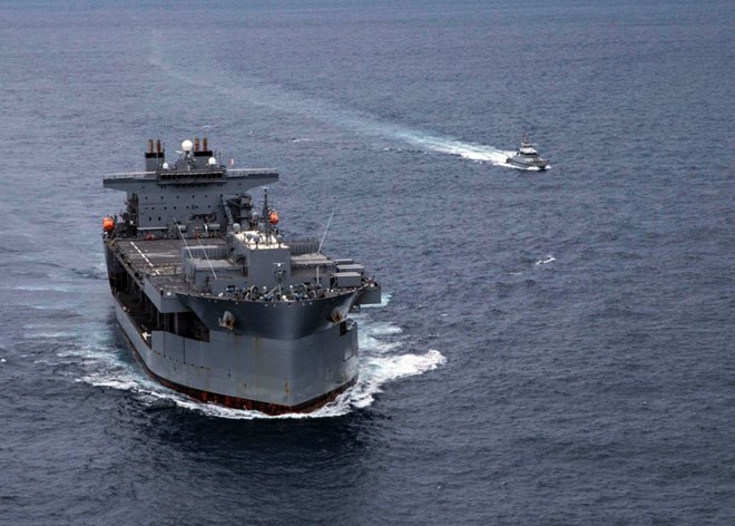 USS Hershel "Woody" Williams, oo ah saldhiga badda ee ciidamada Maraykanka ayaa taageeraya dhaqdhaqaaqa ka bixitaanka ciidamada, sid lagu sheegay bayaan kasoo baxay militariga.