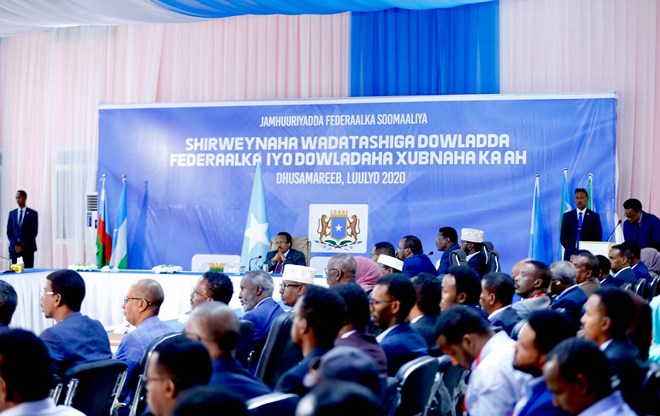 Jimco, Luulyo 24, 2020 (HOL) - Warsaxaafadeed kasoo baxay beesha caalamka ayaa lagusoo dhoweeyay kulankii madaxda dowladda Federaalka Soomaaliya iyo dowladdaha Xubnaha ka ah ku yeesheen magaalada Dhuusamareeb, iyagoo sheegay inuu yahay dib u billaabashadii aadka looga dhursugayay ee wadashaqeyn wax ku ool ah oo dhexmarta madaxda DFS iyo DXF.