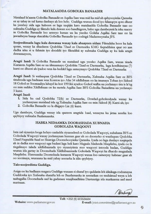 newsinsideWaxyaabaha ay keeneen guddigaasi waxaa kamid ah habka matalaadda kuraaska maamulka Gobolka Banaadir ay noqoneyso, miisaanka kuraasta siyaasadeed oo ay dumarku yeelan doonaan, daadajinta kuraasta xildhibaannada Baarlamanka Qaranka iyo sida ay noqon kareyso doorashada kuraasta Gobollada waqooyi Somaliland.