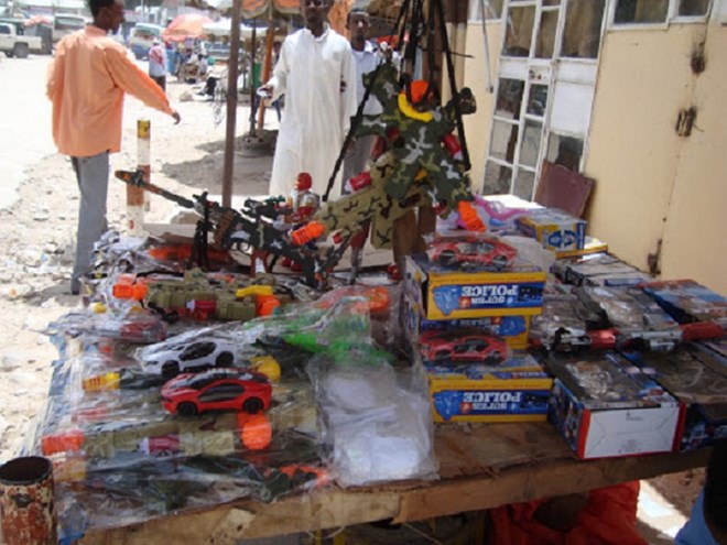 Soomaaliya, xilliyada ciidaha waxaa carruurta loo iibiyaa agab lagu ciyaarsiiyo oo loo ekeysiiyo hubka sida bastooladaha iyo qorayaha boobayaasha ah, laakiin Magaalada Baydhabo ayaa hadda si cad ka ganacsiga agabkaasi looga xaaraantinimeeyay.