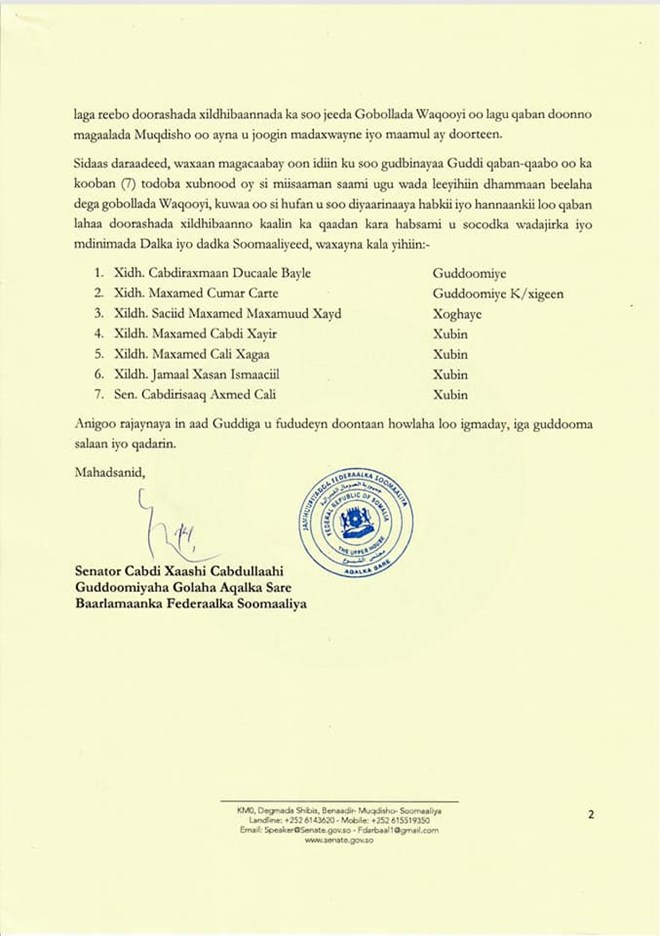 newsinsideGuddiga la magacaabay waxaa gudoomiye u ah wasiirka maaliyadda Soomaaliya, Cabdiraxmaan Bayle oo hadda xubin ka ah golaha aqalka hoose, waxaa kaloo qeyb ka ah xildhibaano iyo senataro loolan ugu jira inay kursiga kusoo laabtaan.