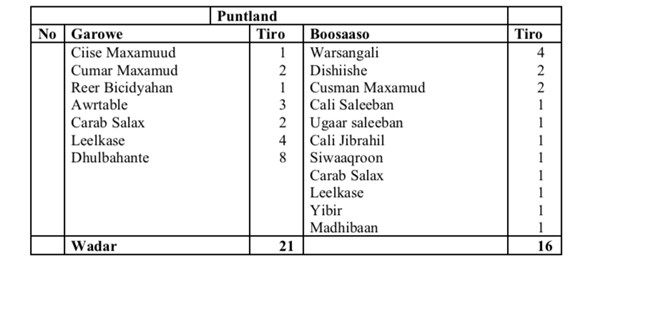 Hoos ka akhri Jadwalka iyo Shaxda;