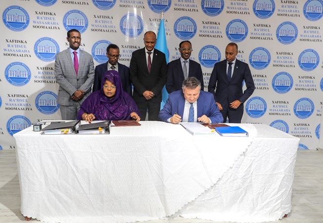 Heshiiska waxaa dowladda Soomaaliya u saxiixday Wasiirka Dekedaha Mariam Aweys Jaamac, iyadoo sheegtay in shirkadda Turkiga ay gacanta ku hayndoonto hawlaha Terminalka iyo adeegyada kale ee dekedda.