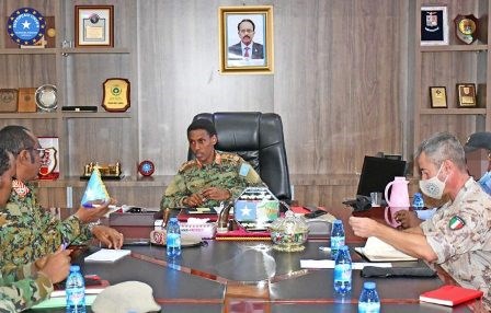 Khamiis, April, 01, 2021 (HOL) - Taliyaha ciidanka xoogga dalka Soomaaliyeed Jen Odawaa Yuusuf Raagge ayaa kulan la qaatay taliyaha howlgalka midowga Yurub ee Soomaaliya iyaga oo ka wada hadlay xoojinta tababarada ciidanka xoogga dalka Soomaaliyeed.