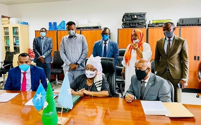 Isniin, April, 26, 2021 (HOL) - Soomaaliya iyo Midowga Afrika ayaa magaalada Adis Ababa ku kala saxiixday Heshiis Dowladda Soomaaliya ay uga mid noqoneyso Wadamada Afrika ee awoodda u leh yareynta Khataraha musiibooyinka (African Risk Capacity).
