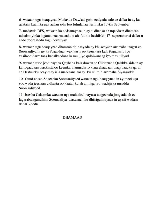 Waxay sidoo kale isku raaceen in meesha laga saaro wax kaste oo ka hor imaan kara ama caqabad ku noqon kara hirgalinta heshiiskii doorasho ee 17 september.