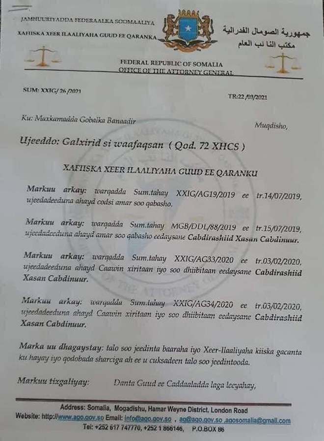 newsinsideXafiiska xeer ilaaliyaha guud oo soo saaray go'aanka lagu xiray kiiska dacwadda Janan ayaa u cuskaday Danta guud ee caddaalada laga leeyahay.