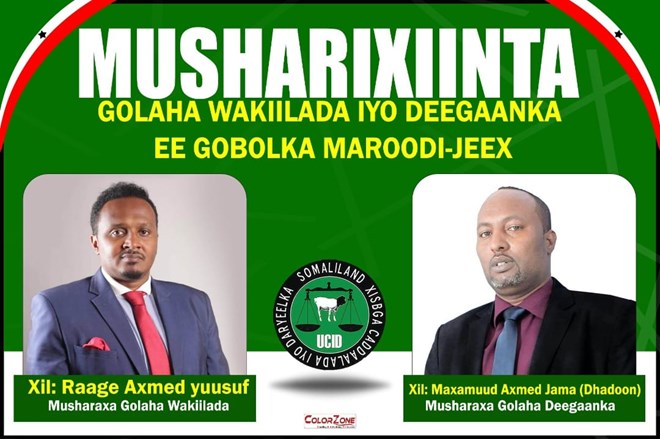 Musharixiinta oo lagu kala magacaabo Raage Axmed Yuusuf iyo Maxamuud Axmed Jaamac (Dhadoon) ayaa sideedi (8) bishaan xabsiga la dhigay, kadib markii ay ku dhawaaqeen in ay ka sharaxanyihiin xisbiga mucaarad ka ah ee UCID, walina xukuumada Somaliland kamay hadal sababta keentay xadhiga labada musharax.