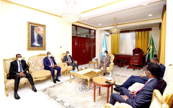 Axad, Feberaayo, 21, 2021 (HOL) - Madaxtooyada Soomaaliya ayaa goordhaw qoraal kasoo saartay shirkii maanta u furmay madaxda dowladda Fedaraalka iyo kuwa dowlad goboleedyada iyo gobolka Banaadir oo aay goobjoog ka ahayeen Wakiilo ka socda Beesha Caalamka oo uu hoggaaminayay ergayga qaramada midoobay ee Soomaaliya James Swan waxaana kulanka looga hadlayay arrimaha doorashooyinka Soomaaliya.
