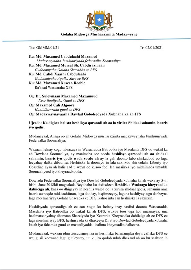 Hakaan hoose ka akhriso digiinta kasoo baxday heshiiska.