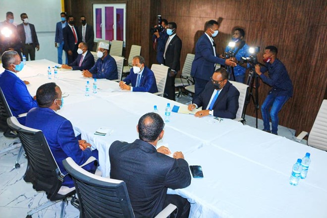 Axad, Maarso, 14, 2021 (HOL) - Goor dhaw waxaa shir uga furmay magaalada Muqdisho Midowga Musharixiinta iyo Madaxweynayaasha Dowlad Gobolleedyada Puntland iyo Jubbaland oo Muqdisho u jooga ka qeybgalka shirka xal u helida ismari-waaga doorashada.