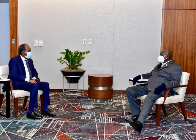 "Madaxweyne Yoweri Museveni iyo Madaxweyne William Ruto ayaa xoojiyey xiriirka taariikhiga ah ee dalalkoodu ay la leeyihiin Soomaaliya iyo doorka ay ku leedahay xasilloonida gobolka, waxayna xuseen muhiimadda ay leedahay fulunta qorsheyaasha lagu soo bandhigay Madasha Iskaashiga Afrika iyo Maraykanka" ayaa lagu yiri qoraal kasoo baxay Madaxtooyada Soomaaliya.