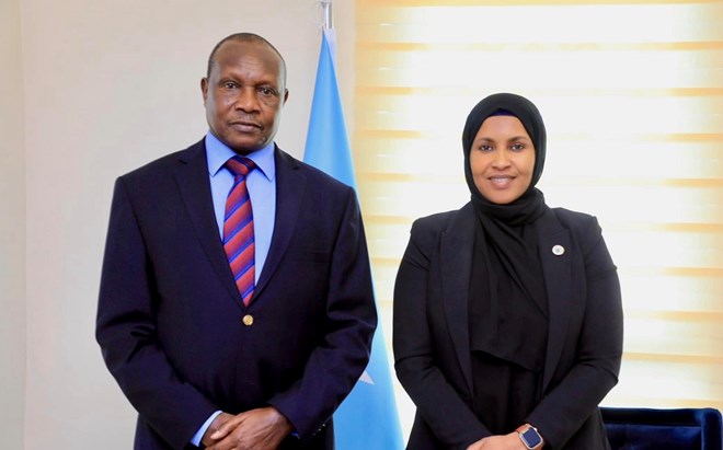 Axad, November, 20, 2022 (HOL) - Wasiirka gaadiidka iyo duulista hawada Xukuumadda Federaalka Soomaaliya, Xil. Fardowsa Cusmaan Cigaa iyo Safiirka Kenya u jooga Soomaaliya, Thomas Chepkoto, ayaa wada hadal ka yeeshay xoojinta iskaashiga duulimaadka ee labada dhinac, ansixinta heshiisyada gaadiidka iyo duullimaadka iyo dib u soo celinta duulimaadyada Kenya Airways.
