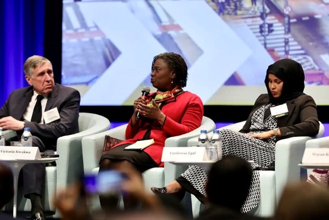 Khamiis, Maarso, 16, 2023 (HOL) - Wasiirka Wasaaradda Gaadiidka iyo Duulista Hawada Xukuumadda Federaalka Soomaaliya Fardowsa Cismaan Cigaal ayaa magaalada Washington ee dalka Mareykanka kaga qeyb gashay shirka horumarinta gaadiidka adduunka oo uu soo qaban qaabiyay Bankiga Adduunka.