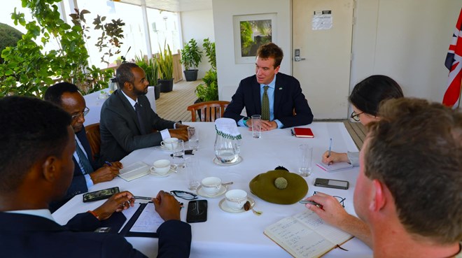 Wasiirka gaashaandhigga ayaa Danjiraha kala hadlay inay dowlaadda Soomaaliya ka taageeraan sidii looga qaadi lahaa cunaqabateynta hubka muddada fog saaran, arrinkaas oo uu wasiirku sheegay inay laf-dhabar u tahay dadaalka loogu jiro ciribtirka Alshabaab.