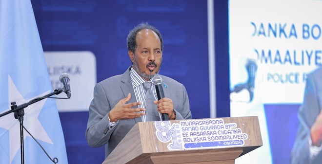 Sabti, December 21, 2024 (HOL) - Madaxweynaha dowladda fedaraalka Soomaaliya Xasan Sheekh Maxamuud oo maanta khudbad ka jeediyay munaasabad lagu xusaayay 81 sano guuuradii kasoo wareegtay markii la aas aasay Booliiska Soomaaliyeed ayaa si adag uga hadlay arrimo badan oo la xariira xaalada guud ee dalka.