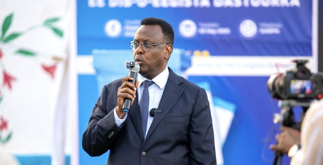 Wuxuu sidoo kale ka hadlay Wasiir Xasan Macalin arinta Dastuurka, wuxuuna xusay in Xukuumadda DanQaran ay ka go'an tahay dhameystirka Dastuurka dalka ee mudada dheer qabyada ah.