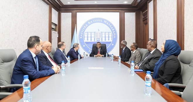 Sabti, September 27, 2025 (HOL) - Ra’iisul Wasaaraha Xukuumadda Soomaaliya, Xamsa Cabdi Barre, ayaa maanta qaabilay wafdi sare oo ka socda ururka Jaamacadda Carabta, kuwaas oo dalka u yimid hirgalinta mashruuc weyn oo lagu taageerayo Manhajka waxbarashada dalka iyo horumarinta Afka Carabiga.