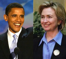 Obama said Clinton was "doing an outstanding job on behalf of this country," and Clinton said it was "exciting" to have Obama in the race.