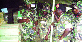 Lt. Gen. Katumba Wamala (second right) inspects the weapons surrendered by residents of Mogadishu last week |