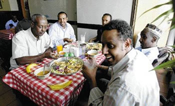 Patrons enjoy a traditional Somali meal of rice, chicken and vegetables at the Banaadiri African Bistro on 95th Street, south of 118th Avenue.Greg Southam, The Journal |