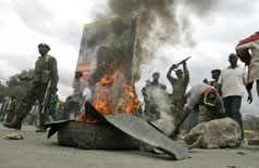 In the pro-opposition western town of Kisumu on Monday, police fired teargas and bullets in the air as several thousand people took to the streets to complain about the deaths of members of their Luo ethnic community in the Rift Valley.