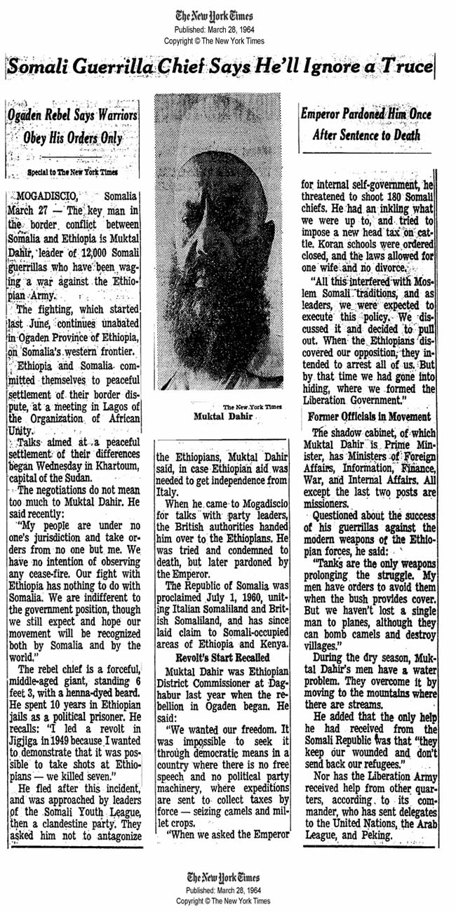 Somali Guerrilla Chief Says He'll Ignore a Turce