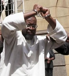 ![]() Al-Amin Kimathi, chairman of Kenya's Muslim Human Rights Forum, lifts his handcuffs during his arrest at the Nairobi Law Court January 18, 2010. REUTERS/Thomas Mukoya |