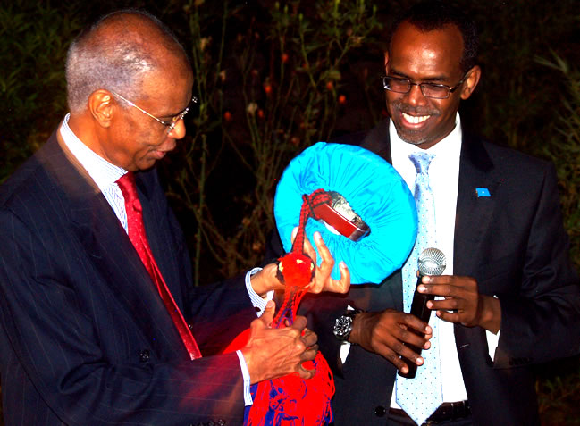 Ambassador Mohamed Ali Nur (America) thanked him for his work in Somalia and presented him with cultural gifts on behalf of the government and the people of Somalia, a memento for his time as the Special Representative of the Secretary General in Somalia.