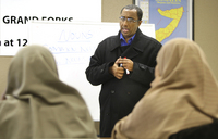 ![]() Somali refugees (left to right) Raani Gedow, Sadiyo Giire and Amina Jama listen as Mohamed Ismail teaches an English class Wednesday morning at the Somali Community Center in Grand Forks. (Sarah Kolberg, staff photographer) |