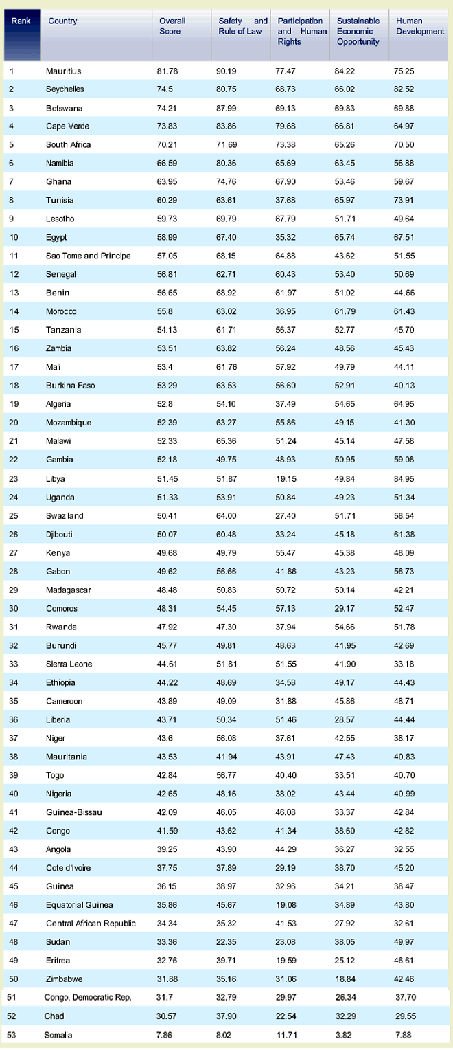 2010 The Ibrahim Index of African Governance - Socres and Rankings