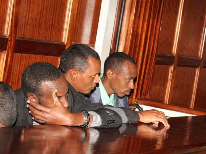 Garissa University College terror attack sus- pects at the Milimani law courts last September 8.