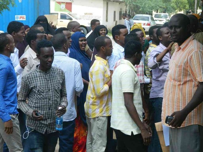 Kenyans whose fingerprints appear in the UNHCR at the Garissa sub-county district office wait for their turn to be vetted on Wednesday.