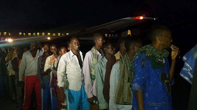 Government officials, including the foreign minister, Yusuf Garad Omar, lawmakers and senior security officials, welcomed the released prisoners at Mogadishu Aden Adde International Airport.