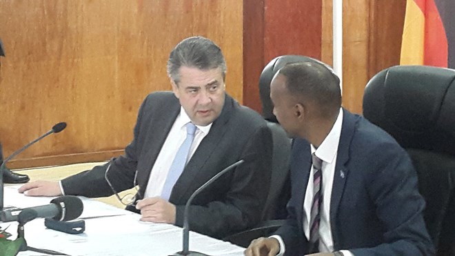 Germany's Foreign Minister Sigmar Gabriel with Somali PM Khayre