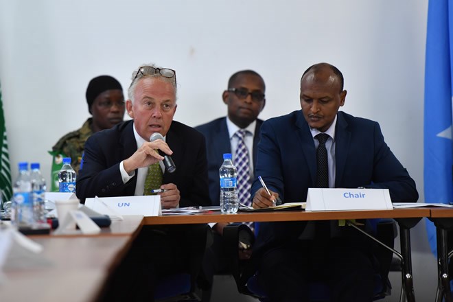The meeting was also attended by top Federal Government of Somalia (FGS) officials, representatives of federal member states, UN officials – including the Special Representative of the UN Secretary-General (SRSG) for Somalia, Michael Keating – and members of the diplomatic corps.