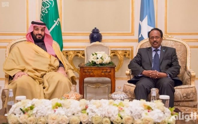 Somalia Presiden Mohammed Abdullah Mohammed Farmaajo Meets with Mohammed bin Salman bin Abdul Aziz the second deputy prime minister of Saudi Arabia and the youngest minister of defense in the world. FILE PHOTO