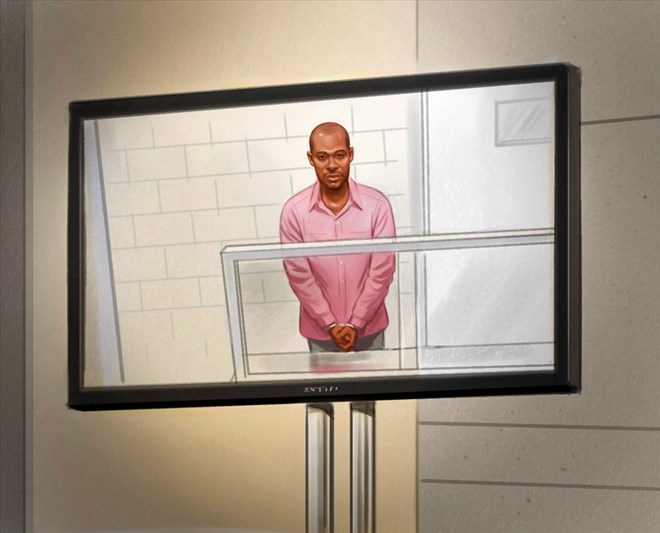 Ali Omar Ader is shown in court in an artist's sketch. A man accused of holding Amanda Lindhout hostage in Somalia says he was threatened with death if he didn't help the gang that seized her nine years ago.Testifying Monday in Ontario Superior Court, Ali Omar Ader said he had no role in the plan to kidnap Lindhout, who was working as a journalist near Mogadishu in August 2008. THE CANADIAN PRESS/Greg Banning