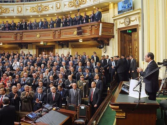 Egyptian President Abdel-Fattah el-Sissi, right, addresses parliament in Cairo on Feb. 13, 2016.(Photo: MENA via AP)