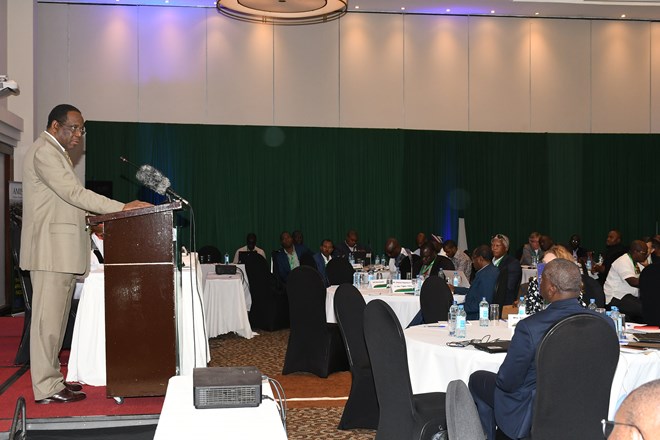Ambassador Francisco Madeira, the Special Representative of the Chairperson of the African Union Commission (SRCC) for Somalia, speaks during the closing session of the AMISOM Mission Implementation Plan and Budget meeting in Nairobi, Kenya, on 05 April 2019. AMISOM Photo