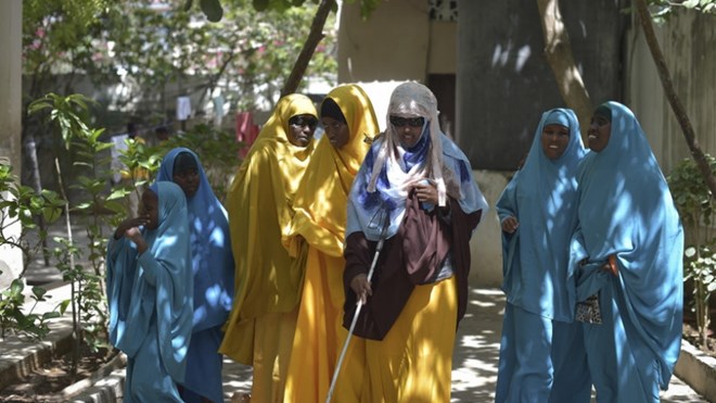 The Somali government identified the woman in the center of this 2018 UNSOM photo as the suicide bomber who killed eight people, including Mogadishu Mayor Abdirahman Omar Osman, in a July 24, 2019, attack.