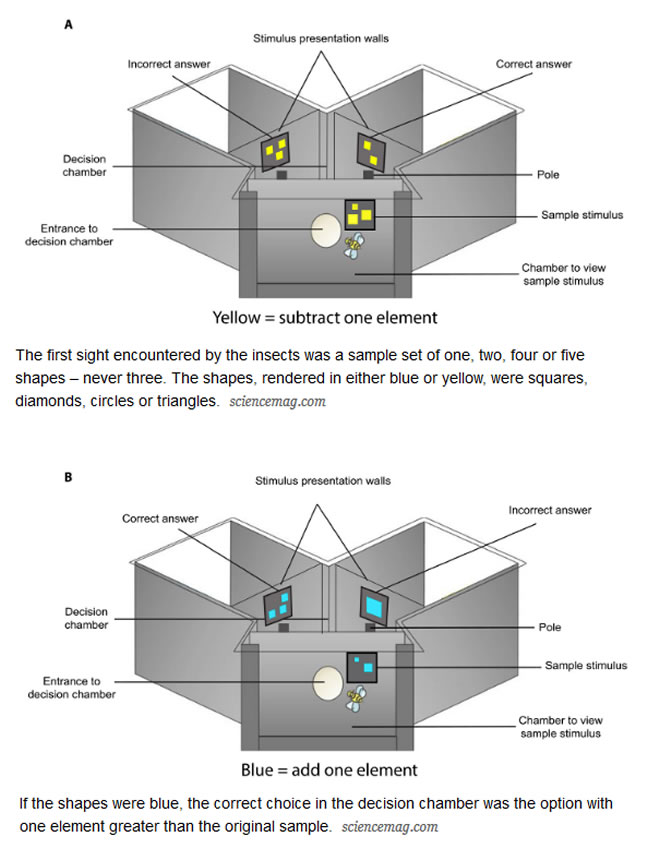 In the new study, conducted last year at the Royal Melbourne Institute of Technology in southeastern Australia, the researchers devised a Y-shaped maze to train 14 bees to add and subtract.