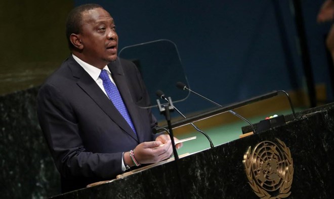 Kenya's President Uhuru Kenyatta speaks at the Nelson Mandela Peace Summit during the 73rd United Nations General Assembly in New York, U.S., September 24, 2018. REUTERS/Carlo Allegri/File Photo
